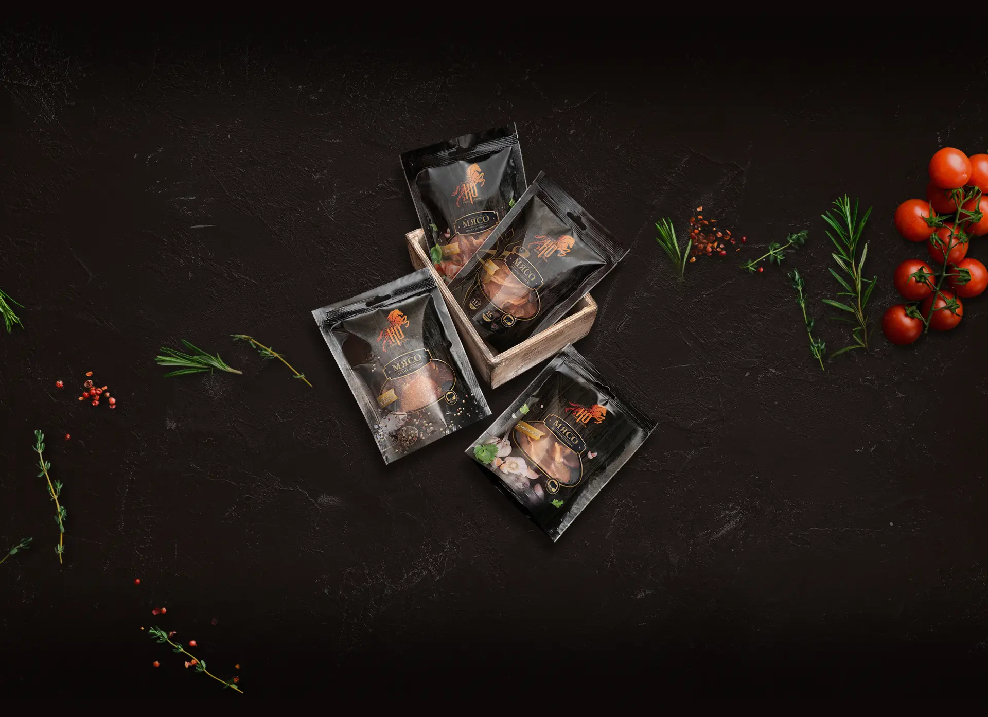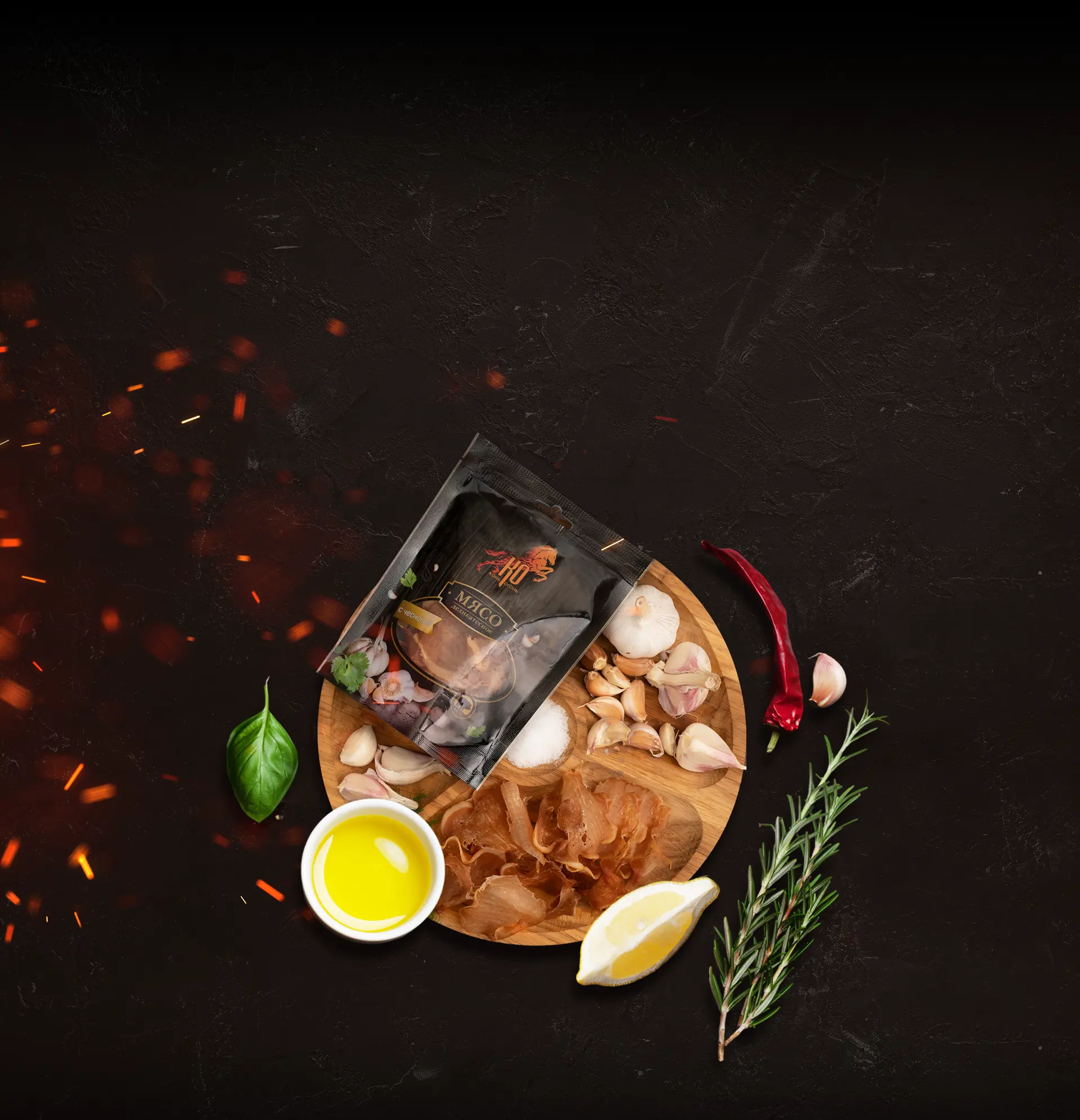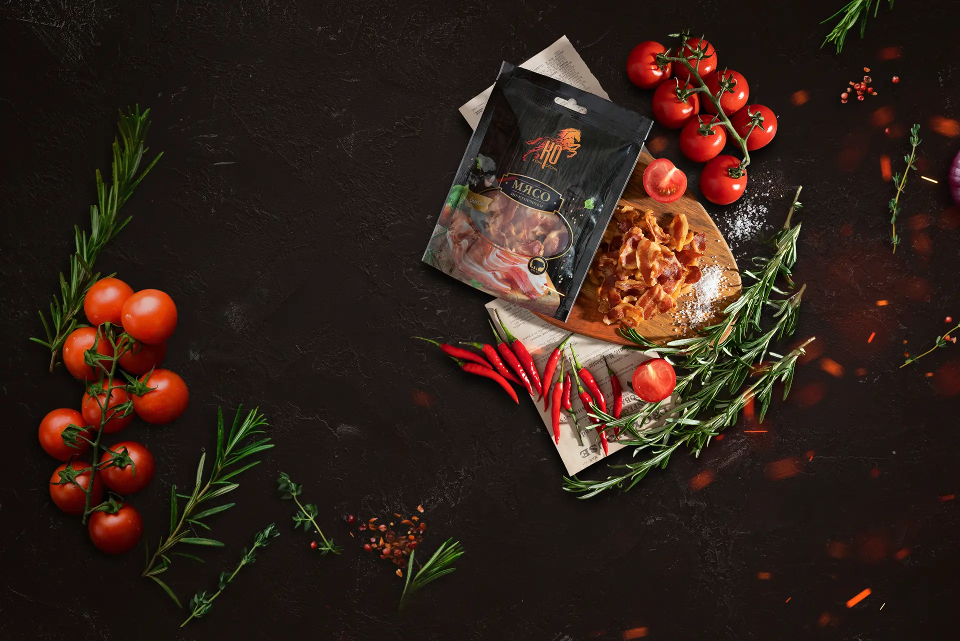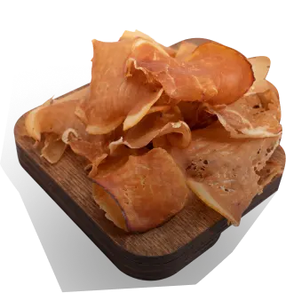После окончания процессов созревания, вяления и копчения каждый кусочек попадает в камеры отдыха для того, чтобы вкус равномерно распределился, набрал силу и, спустя время наконец‑то, сухой, тонкий и хрустящий попал в упаковку и на стол к нашим любимым клиентам.